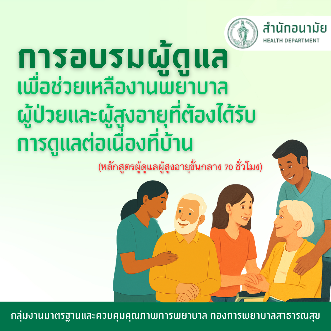 สื่อการเรียนการสอนภาคทฤษฎีประกอบการอบรมผู้ดูแลเพื่อช่วยเหลืองานพยาบาลผู้ป่วยและผู้สูงอายุที่ต้องได้รับการดูแลต่อเนื่องที่บ้าน สำหรับประชาชน
